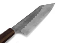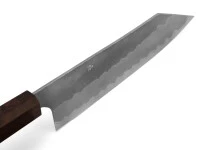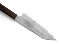 ist das typisch japanisches Allzweckmesser, ursprünglich für Fischer entwickelt. Es ist sehr vielseitig für Fleisch, Fisch und Gemüse einsetzbar. Auch für einen ziehenden Filetierschnitt. Die Klinge hat einen Schneidkern aus Aogami super Stahl. Sehr markant ist das Hammering, individuell von Hand ausgeführt, so dass jedes Messer ein Unikat ist. Der Griff besteht aus echtem Hirschhorn und liegt bemerkenswert gut in der Hand. Das Messer ist dadurch etwas schwerer und der Schwerpunkt ist leicht nach hinten verschoben, bleibt aber wendig und sehr angenehm in der Handhabung. Nigara Hamono ist ein legendärer Name in Japan mit sehr langer, über 300 Jahre alter Tradition in der Fertigung von Schwertern und Messern. Seit 8 Generationen kommen aus dieser Schmiede Schneidwerkzeuge höchster Güte.