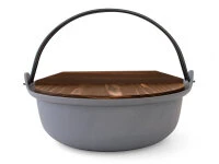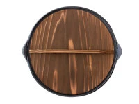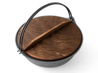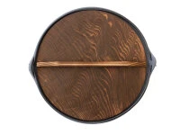 Hinweis: Der Holzdeckel ist brennbar. Nicht im Backofen und nur mit Vorsicht auf Grill und offenem Feuer verwenden.