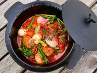 Der Gusseisentopf ist auf allen Herdarten – Elektro, Gas, Induktion – und auch auf dem Grill verwendbar.