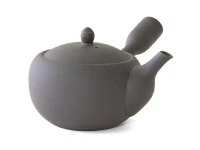 Klassisch minimalistische japanische Seitengriff-Teekanne von Nankei, Yokkaichi. Echte Töpferware aus natürlichem Banko Ton. Die Teekanne ist komplett unglasiert, um die positive Wirkung auf den Tee optimal zu erhalten. Sie verfügt über ein integriertes Teesieb aus Ton. Mit 320 ml Füllmenge ist sie ideal für 2-4 Personen. Japanische Teekannen aus Banko sind bekannt und beliebt wegen ihrer hohen Qualität und dem besonders hohen Gehalt an Eisen und Mineralstoffen des Ton. Banko Yaki Teekannen wird nachgesagt, dass sie den Geschmack des Tees verstärken und harmonisieren. In Japan werden sie insbesondere für hochklassige Tees wie Gyokuro, Kabusecha und edle Senchas eingesetzt. Nankei ist eine traditionelle Töpfer-Manufaktur im Herzen des Banko Gebietes. Die Produkte überzeugen durch ihre formale Ausgewogenheit, das minimalistische Design und die hohe, handwerkliche Präzision.