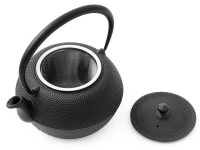 Das Arare-Muster ist ein echter und nach wie vor sehr beliebter Klassiker bei Teekannen und Tetsubin aus Gusseisen. Die Teekanne Arare von OIGEN ist eine besonders elegante Erscheinung, auch in dieser Größe. Innen ist die Teekanne emailliert, sie verfügt über ein herausnehmbares, rostfreies Teesieb aus Edelstahl. Gefertigt wird diese Teekanne von erfahrenen Handwerkern im Nanbu Teki Verfahren bei der Manufaktur OIGEN, eine der besten Adressen für Tetsubin, Teekannen und Kochgeschirr aus Gusseisen. Bei richtiger Handhabung hält diese Teekanne ihren Tee deutlich länger warm als herkömmliche Teekannen aus Glas oder Keramik. Die Füllmenge ist so bemessen, dass sie für bis zu 6 Teebecher oder ca. 9 Teeschalen ideal dimensioniert ist.