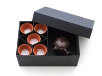 Japanisches Teeservice Teppachu Kurokusube, 3-teilig, Banko Yaki