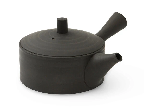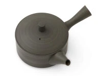 Japanische Seitengriff-Teekanne von Koji Iwase, Tokoname. Koji Iwase verbindet Tradition mit moderner, klarer Formensprache. 1946 geboren begann seine Laufbahn als Keramikkünstler bereits 1962 in Tokoname. Seinen Weg als Meister hat Koji Iwase mit vielen Auszeichnungen gekrönt. Allein in Tokoname gewann er fünfmal den Gold und viermal den Silber Award für Design. Die Form der