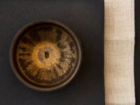Eine wunderschöne, rustikale Matchaschale des japanischen Keramik-Künstlers Shinobu Hashimoto. Die unvergleichliche Optik der Schale, eine schwarze unregelmäßige Textur überzeugt diejenigen, die nach dem Besonderen suchen. Die Oberfläche steht in einem interessanten Kontrast zum Inhalt, dem satten Grün des Matchatees.