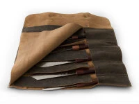 Die Messertasche ist mit zwei Schnallen und einem Tragegriff ausgerüstet. Sie besteht aus Rauhleder, außen rauh, innen weich gearbeitet. Die Messerrolle eignet sich hervorragend für Profis wie auch für Hobbyköche, die gerne ihre Messer zu gemeinsamen Kochabend oder zu sonstigen Events mitnehmen möchten. Aber auch in der Schublade bietet sie den wertvollen Messern einen sehr guten Schutz.