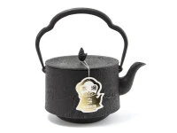 Sehr traditioneller japanischer Nanbu-Tetsubin (iron kettle) von Iwachu, Morioka, der nur in geringen Stückzahlen erhältlich ist. Dieser Tetsubin wurde von einem alten Meister überwiegend in Handarbeit gefertigt. Er ist für offenes Feuer, Gas- und Elektroherde geeignet, allerdings vom Hersteller nicht für Induktionsherde frei gegeben. Sein traditionelles, feines Design erzählt japanische Geschichte. Tetsubin von Iwachu zeichnen sich durch die sehr hohe, kontrollierte Materialqualität und die sorgfältige Produktion aus. Die Innenfläche ist mit dem traditionellen Einbrenn-Verfahren Kama-Yaki behandelt, was die Rostbildung reduziert aber vollständig durchgängig für das wertvolle Eisen und die Mineralien ist. Der Tetsubin wird in vielen Arbeitsschritten aufwändig in Handarbeit hergestellt. Teemeister kochen in Tetsubin das Wasser für den Tee der Teezeremonie auf offenem Feuer. Das in Tetsubin gekochte Wasser wird weicher, gewinnt aus dem Kessel Eisen und verbessert den Geschmack von Tee, Kaffee oder anderen Getränken. Immer mehr anspruchsvolle Teetrinker benutzen für ihren täglichen Teegenuss einen Tetsubin, bevorzugt einen Nanbu-Tetsubin aus Japan.