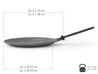 Diese sehr flachen japanischen Pfannen sind nicht nur für Omelette gedacht. Es dürfen auch Crêpes sein. Oder Gemüsescheiben, Schnitzel oder andere Leckereien, die in der Pfanne ohne Rand perfekt gelingen. Lecker wird es auf jeden Fall. Und wenn Sie etwas im Backofen überbacken wollen, passt die Omelettpfanne auch. Der Griff ist abnehmbar, bleibt einfach draußen und kühl. Verwenden können Sie die schöne Pfanne auf allen Herden, dem Grill, dem Backofen oder der Feuerstelle. Nach dem Braten haken Sie den Griff ein und stellen die Pfanne beiseite. Da der Griff lose ist, bitte die heiße Pfanne nicht am Griff transportieren. Mit einer schönen hitzebeständigen Unterlage macht das ungewöhnliche Stück aber auch als Servierpfanne beachtlichen Eindruck.