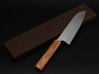 . Finish: Die Minamo-Serie hat eine Klinge mit 3 Lagen und einem ausgesprochen schönen Hammering, das die Optik der Klinge dominiert. Bevor die Klinge gehämmert wird, bearbeitet Yoshimi die Klingen-Oberfläche mit einem besonders feinen Schliff. Griff: Diese Serie bieten wir mit zwei unterschiedlichen Griffen an. Ein Griff ist aus italienischem Olivenholz, gewachst und achteckig (Oktagon) geformt. Der zweite Griff ist aus dunkler Wenge. oktagon. Beide Griffe vermitteln eine großartige Haptik und liegend hervorragend in der Hand.