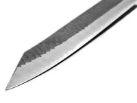 , das für Sushi, Sashimi und feine Scheiben z.B. von Schinken verwendet wird. Die Klinge mit einem Schneidkern aus SPG2 Stahl, ist mit einem japanischen Edelstahl ummantelt. Sehr markant ist das Hammering, individuell von Hand ausgeführt, so dass jedes Messer ein Unikat ist. Der Griff besteht aus hochwertiger Wenge, achteckig und einer Zwinge aus Büffelhorn. Beachten Sie bitte, dass das Holz natürlich etwas unterschiedlich in Farbe und Maserung ist. Nigara Hamono ist ein legendärer Name in Japan mit sehr langer, über 300 Jahre alter Tradition in der Fertigung von Schwertern und Messern. Seit 8 Generationen kommen aus dieser Schmiede Schneidwerkzeuge höchster Güte.
