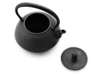 Original japanischer, traditioneller Wasserkessel (Nanbu-Tetsubin) von Iwachu, Morioka. Geeignet für Elektro- und Gasherde (kleine Flamme), nicht für Induktionsherde. Auf Grund der traditionellen Original-Muster, der sehr hochwertigen Handarbeit und der streng kontrollierte Materialqualität von Iwachu gehören diese Wasserkessel zu den weltweit beliebtesten überhaupt. Über 60 Arbeitsschritte sind notwendig, um dieses meisterliche Produkt zu fertigen. Teemeister kochen darin das Wasser für den Grünen Tee, da es den Geschmack des Wassers und des Tees verbessert. Auch für Kaffee-Wasser ist das Wasser aus Tetsubin hervorragend geeignet. Bei längerem Kochen wird das Wasser mit etwas natürlichem Eisen angereichert, das vom menschlichen Körper sehr gut aufgenommen werden kann.