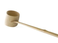 Original Takayama Hishaku von Chikumeido Sabun. Die Manufaktur Chikumeido Sabun stellt in der 24sten Generation Utensilien für die Teezeremonie aus hochwertigem Bambus in meisterlicher Handarbeit her. Sie ist bekannt und geschätzt für die hohe Qualität der Produkte, der sie sich selbstredend verpflichtet fühlt, da sie die meisten Teezeremonie Schulen und deren Schüler in Japan beliefert. Von der Auswahl und Vorbereitung des Bambus – trocknen, entölen – bis zum fertigen Produkt werden ausschließlich traditionelle Methoden und Techniken eingesetzt. Die Hishaku wird dazu verwendet den Wasserkessel zu befüllen und ihm das Wasser für den Tee zu entnehmen. Die Wasserschöpfkelle besteht aus weißem, über zwei Jahre gelagertem Bambus. Sie ist 41,5 cm lang, der Kopf hat einen Durchmesser von 5,5 cm verjüngend auf 5 cm und ist 4,5 cm tief.